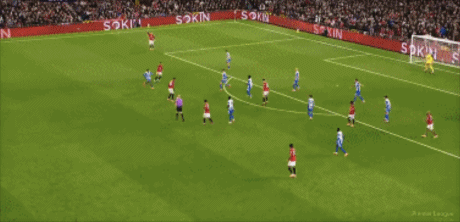 第34分钟,卢克肖前场抢断,卡塞米罗禁区外右脚远射经过折射之后变向入网,2-0!